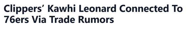 北京时间3月5日,据名记凯文-奥康纳报道,76人曾在交易截止日前试图换来快船球星莱昂纳德。